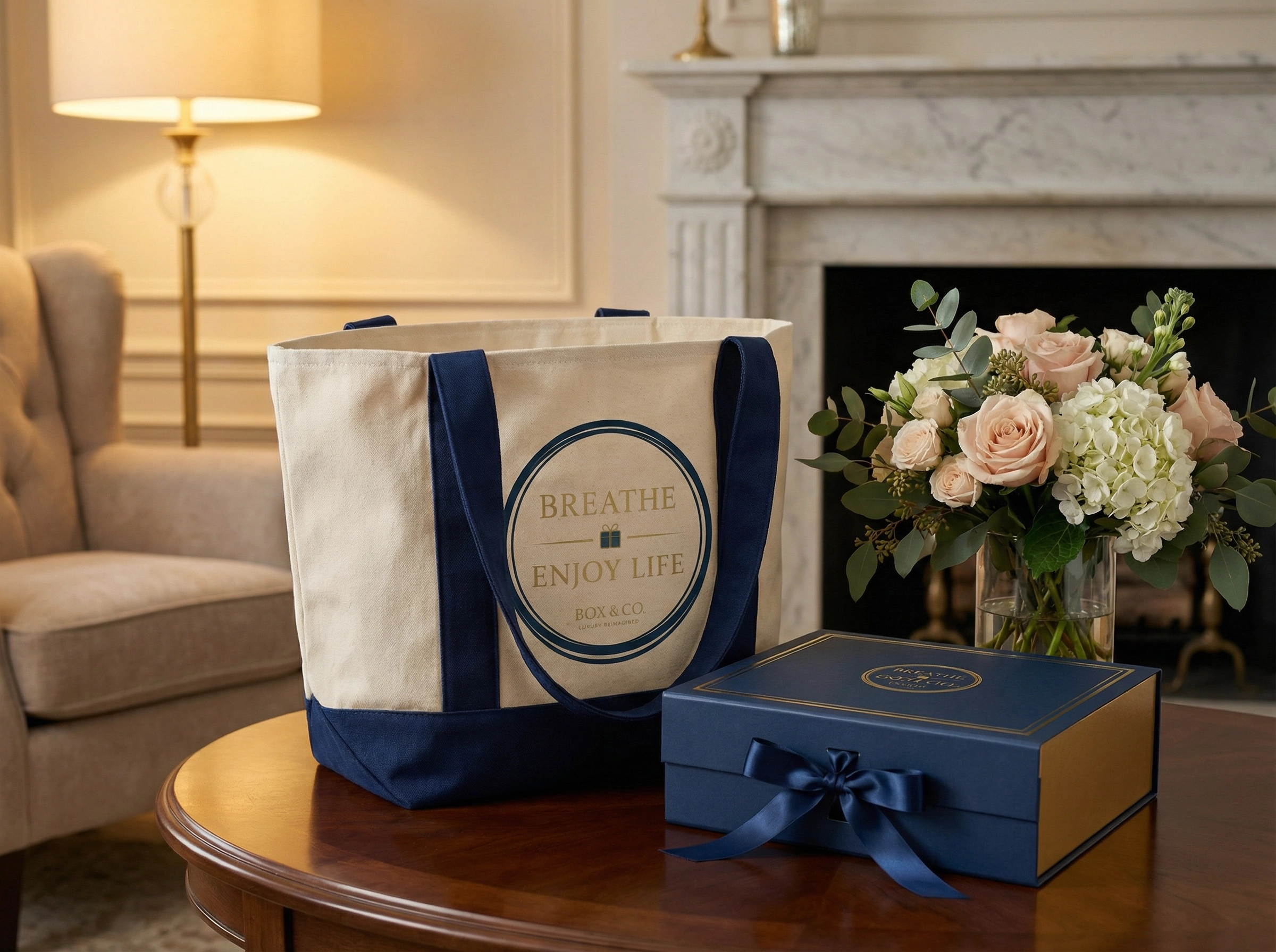Carry luxury wherever you go with our signature Box & Co. branded tote bag. Crafted from durable, eco-friendly canvas and featuring our iconic Breathe Enjoy Life logo, this stylish tote is as functional as it is beautiful. Spacious enough for everyday essentials, it makes a wonderful keepsake that recipients will reach for again and again.